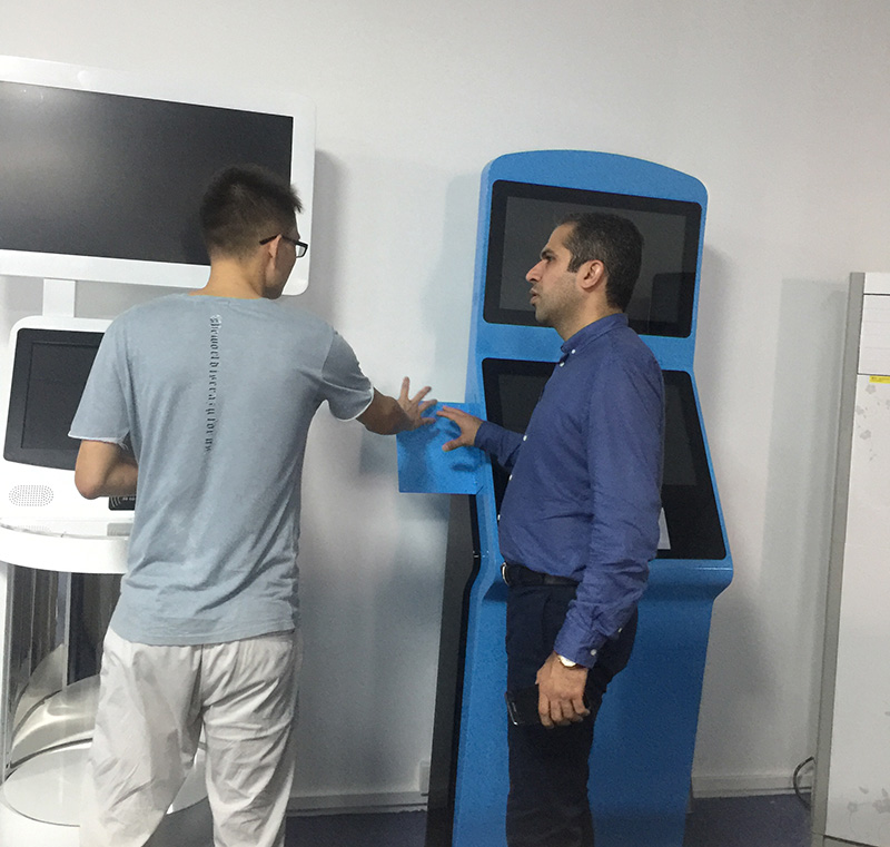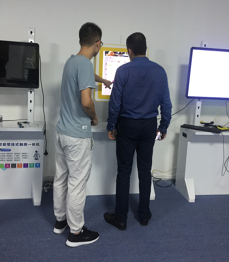 2017年11月26號上午,迪拜客戶一行三人來我司參觀考察,公司業務部負責人熱情的接待了他們。此次迪拜客戶來訪,一是為了實地考察艾維圖科技的整體實力,二是為一批出口迪拜的大屏幕拼接系統、廣告機、觸控一體機等自助設備進行選型。