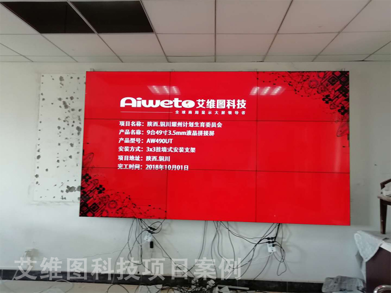 陜西銅川耀州計(jì)劃生育委員會(huì)安裝的艾維圖55寸3.5mm超窄邊液晶拼接屏案例,我們的工程師根據(jù)現(xiàn)場的環(huán)境布局,設(shè)計(jì)了一套3*3液晶拼接屏方案,擁有超高亮度和色彩一致性效果較好,本身就可被看作是充滿時(shí)尚科技元素的建筑裝飾,成為銅川耀州計(jì)劃生育委員會(huì)提升檔次的宣傳工具。這次拍的液晶拼接墻圖片非常的給力,讓群眾通過液晶拼接大屏能快速的了解計(jì)劃生育信息,及具體規(guī)劃。