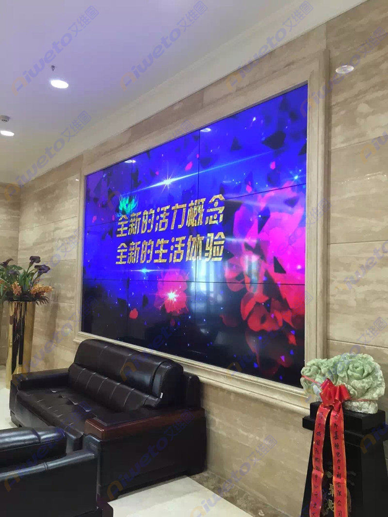 通過對客戶使用需求和部署環(huán)境的認真研究和考察,Aiweto(艾維圖)科技工程師給出了多套相關解決方案,最終選用了由9臺(Aiweto) 55寸3.5mm液晶拼接單元組成的3×3大屏幕液晶拼接墻。(Aiweto) 55寸3.5mm液晶拼接單元是艾維圖科技推出的一款超窄邊液晶拼接顯示器,采用工業(yè)級面板,采用先進的集成處理芯片,性能穩(wěn)定,運動圖像補償等獨有的先進技術,有效的保證了輸出圖像的效果,支持7×24小時開機,拼接邊縫小,適合大屏液晶拼接項目應用。