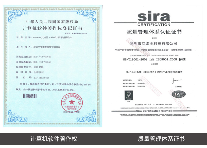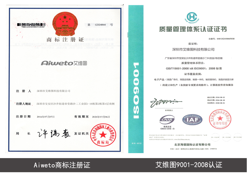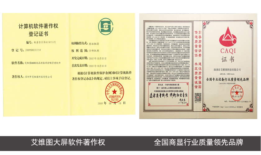 艾維圖科技是中國商用顯示大屏行業品質與信心的保證,公司產品先后通過國際國內CE、ETL、GOST、CCC、UL、CUL品質認證及相關ROHS認證,嚴格在ISO9001:2008質量認證體系下完善產品質量管理,注重日常的7S管理標準的實踐與運用,在工藝流程上嚴格IQC、IPQC、QC、CFQC、QA的各環節質檢工程與供應鏈管理。基本引領和實現了行業內LED顯示屏產品的規格標準化、生產批量化的獨特經營模式,在國際國內贏得了業界良好口碑,對規范行業標準具有深遠影響。